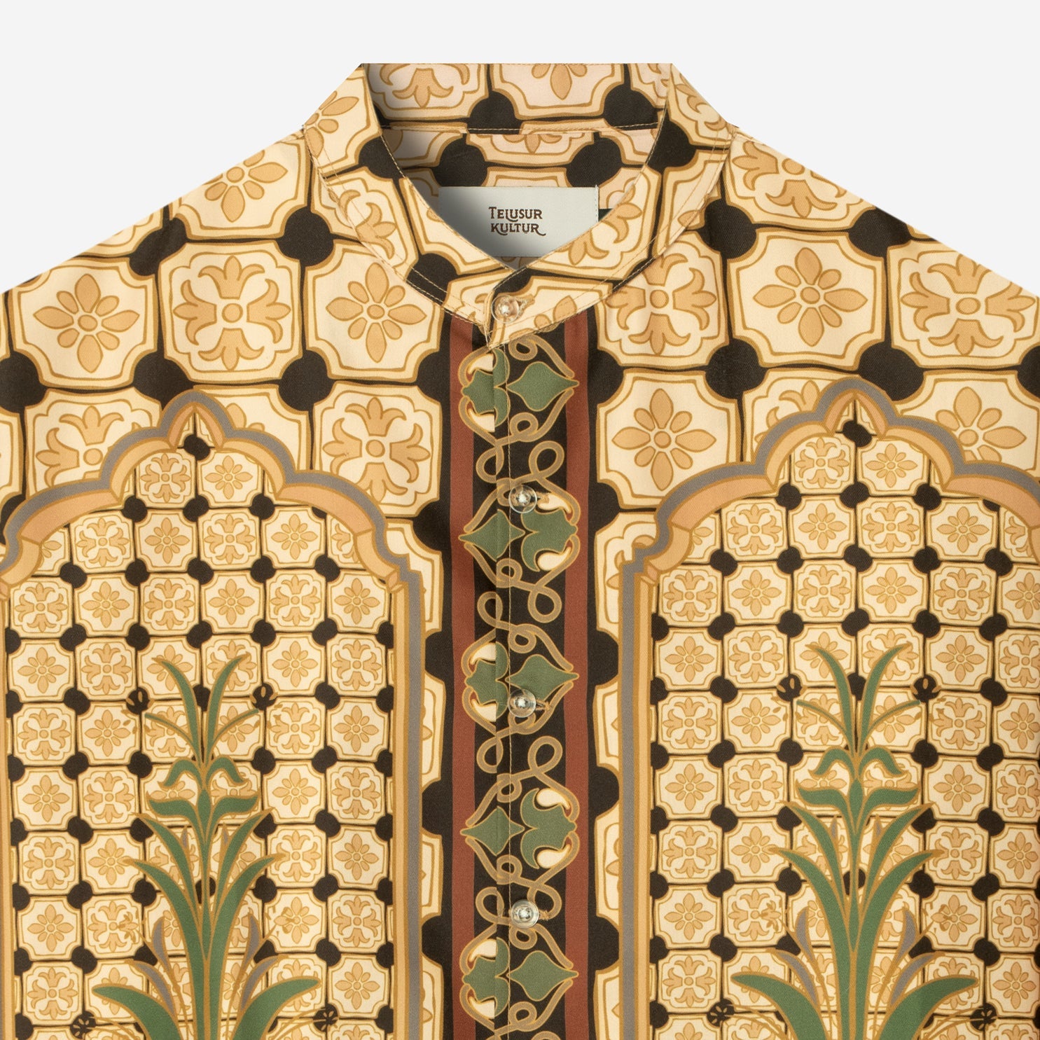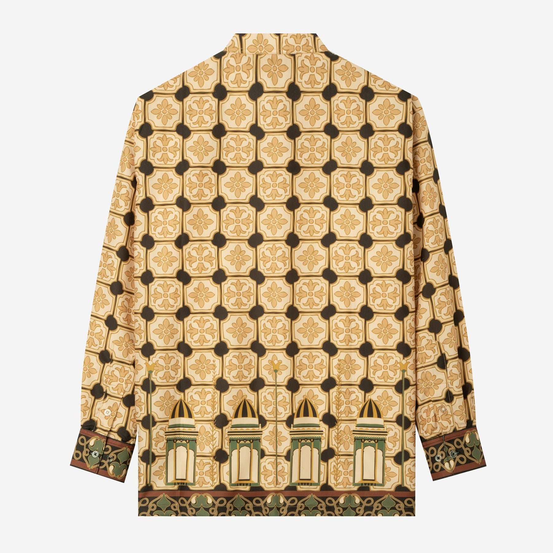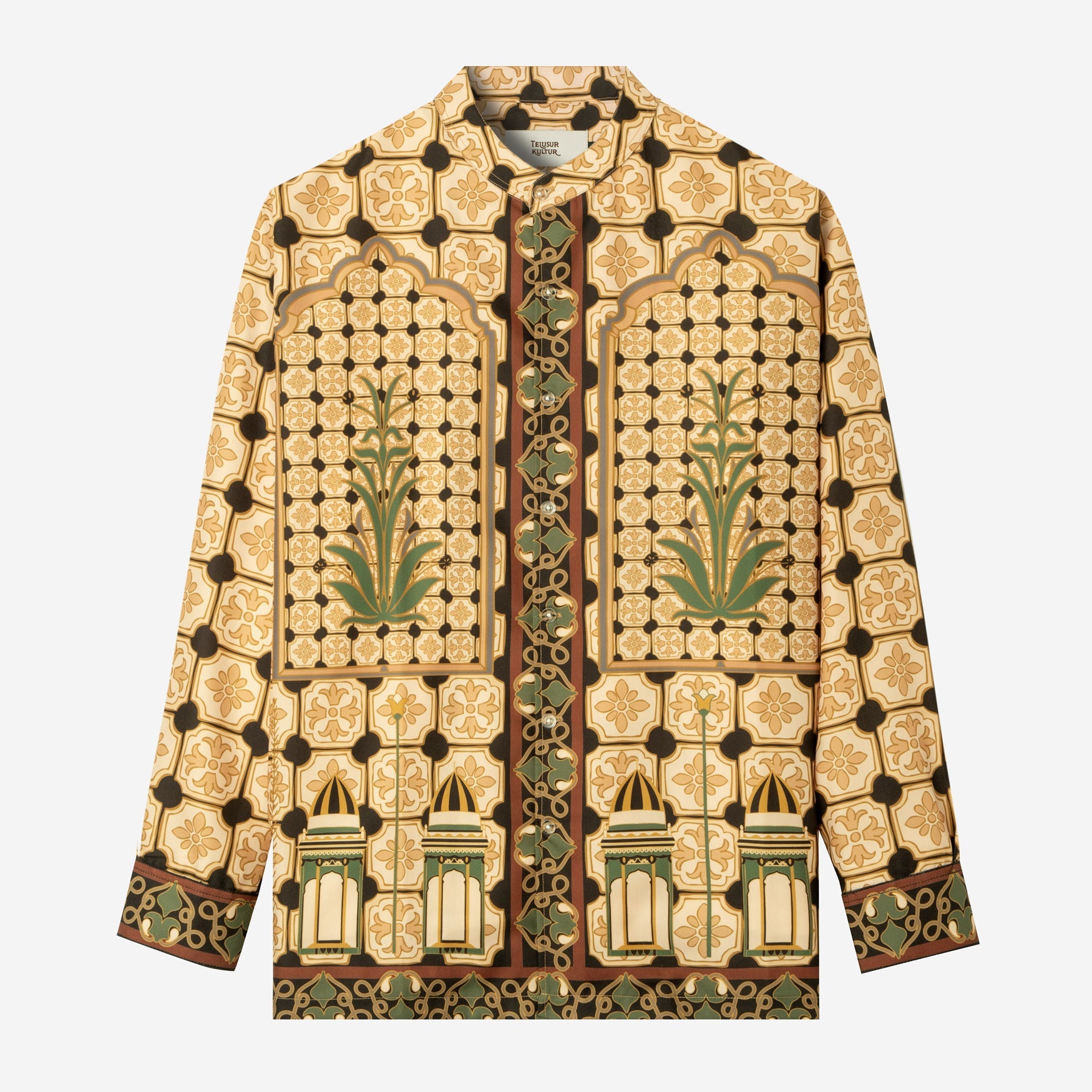 Corak Nusantara Kemeja Pria Lengan Panjang - Masjid Coklat Hijau