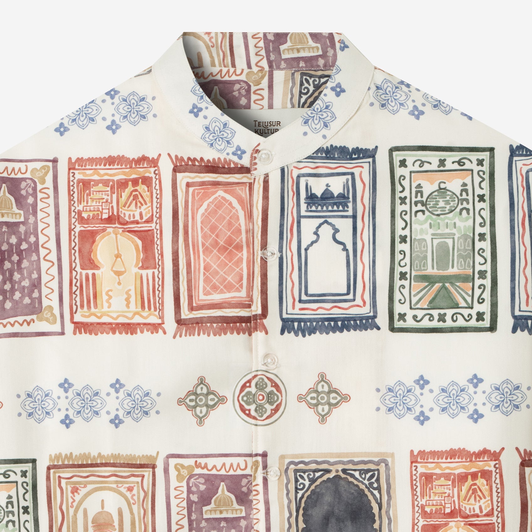 Corak Nusantara Kemeja Pria Lengan Panjang - Sajadah Putih