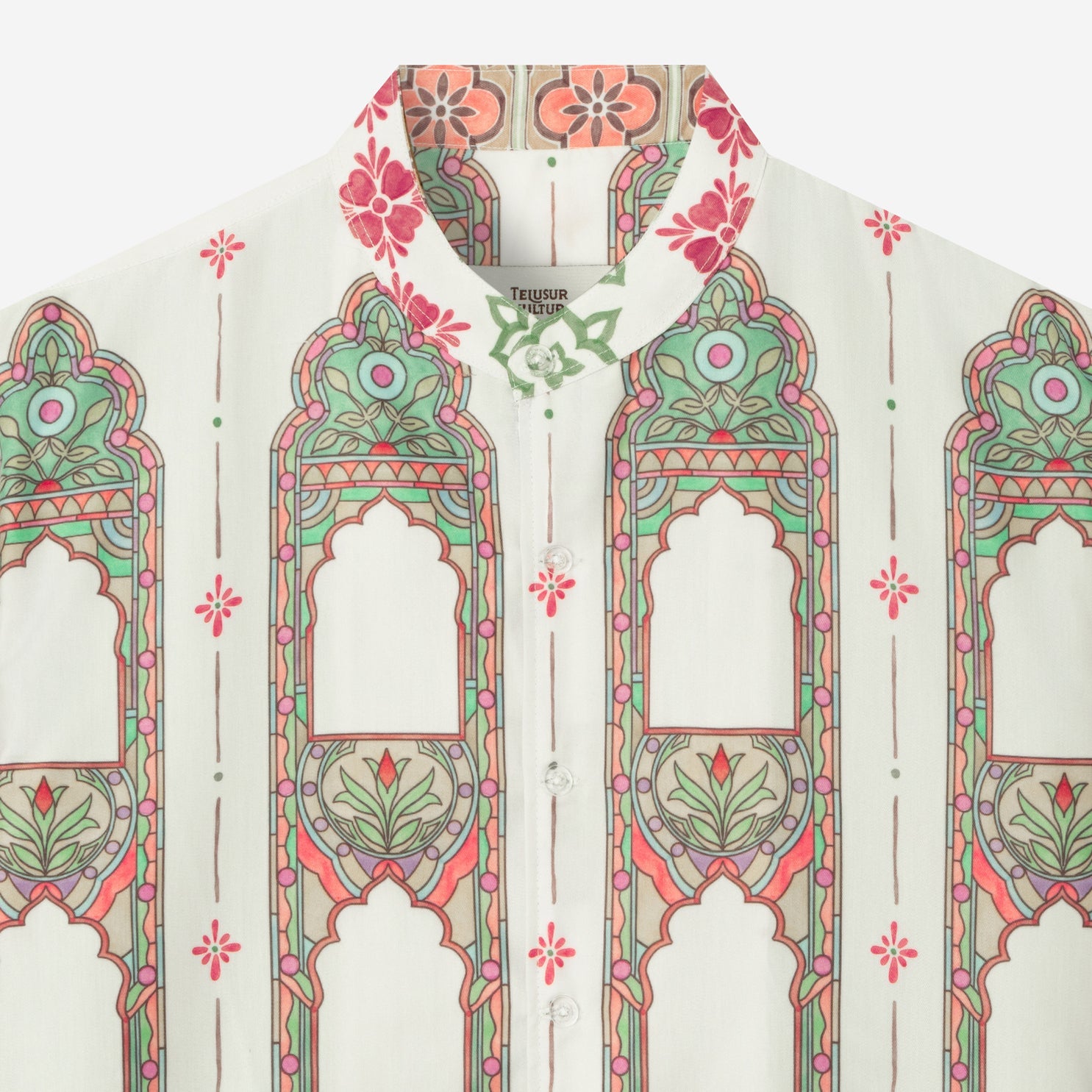 Koleksi Corak Nusantara Edisi Lebaran: Kumpul Keluarga terinspirasi dari “tempat kembali” — baik itu rumah maupun ruang ibadah yang menjadi saksi perjalanan kita. Motif-motifnya merefleksikan arsitektur, jendela, dan detail ruang yang akrab dalam ingatan, diwujudkan dalam corak khas Telusur Kultur yang sarat makna.