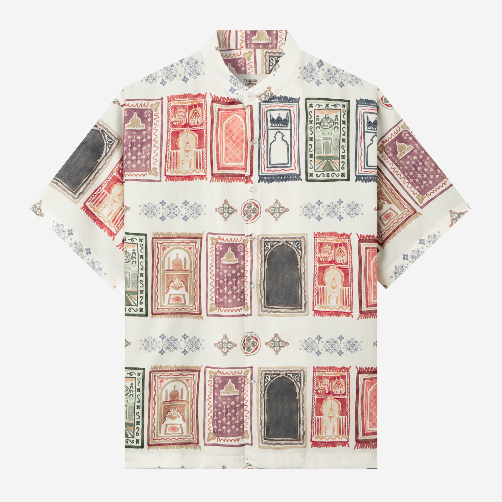 Corak Nusantara Kemeja Pria Lengan Pendek - Sajadah Putih