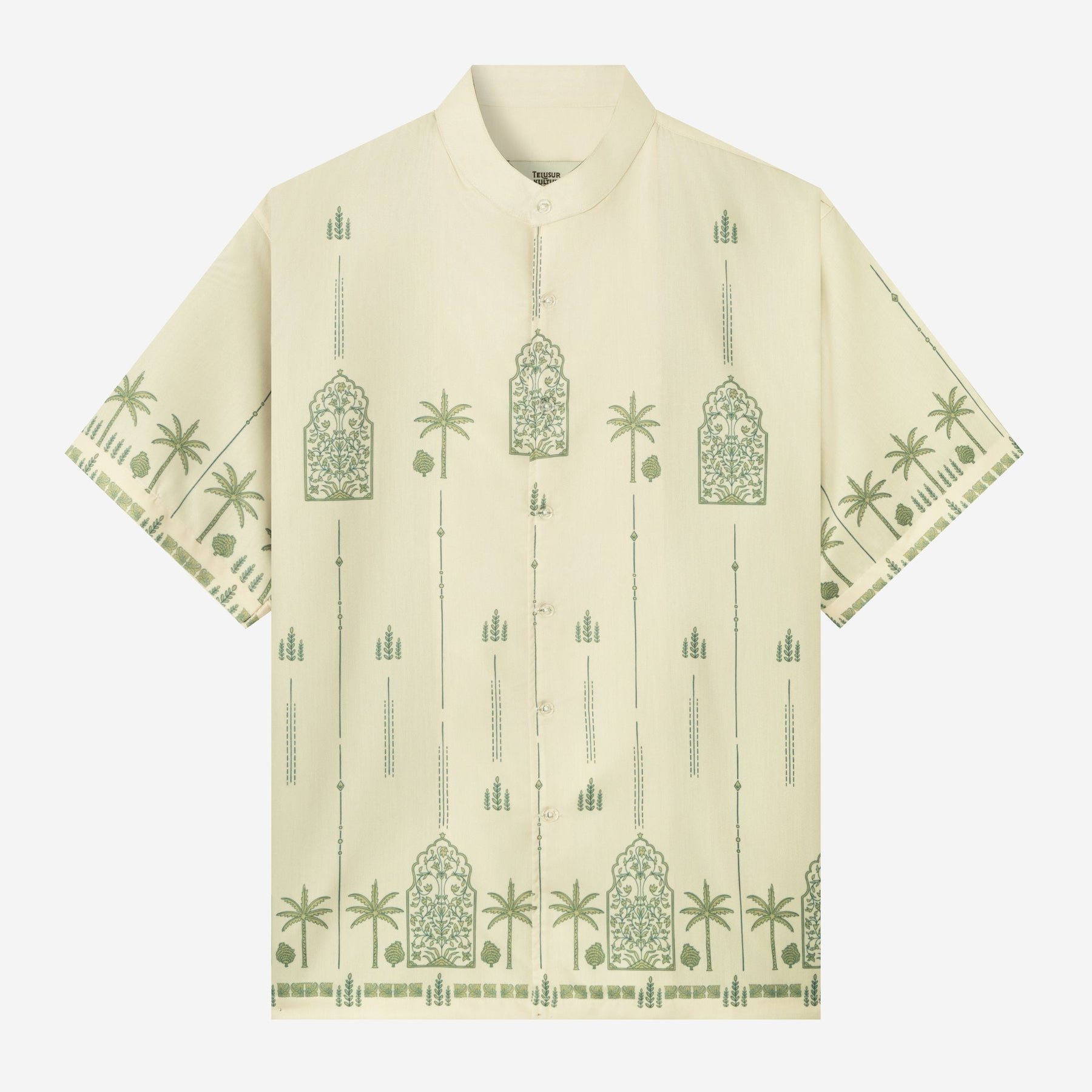 Corak Nusantara Kemeja Pria Lengan Pendek - Taman Putih