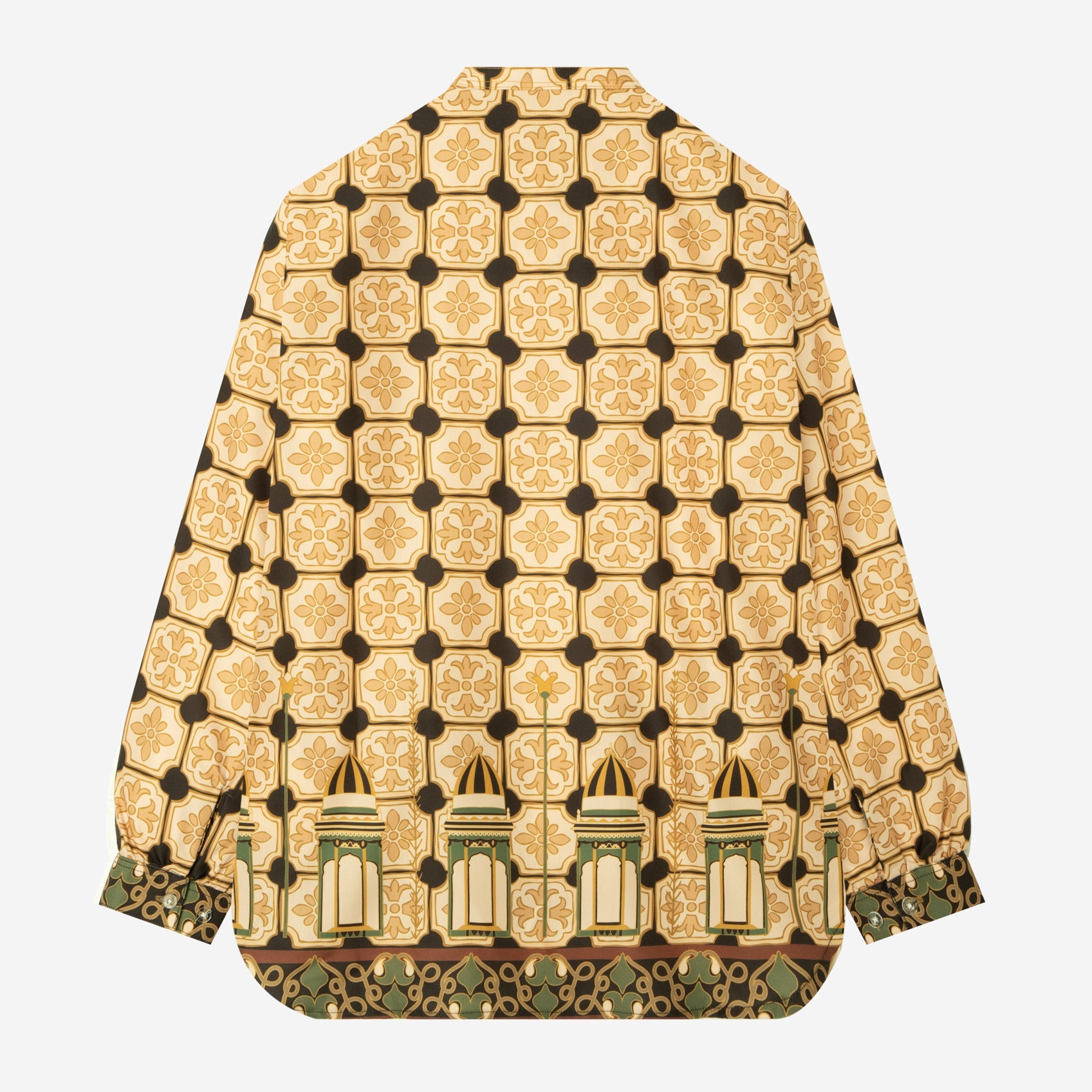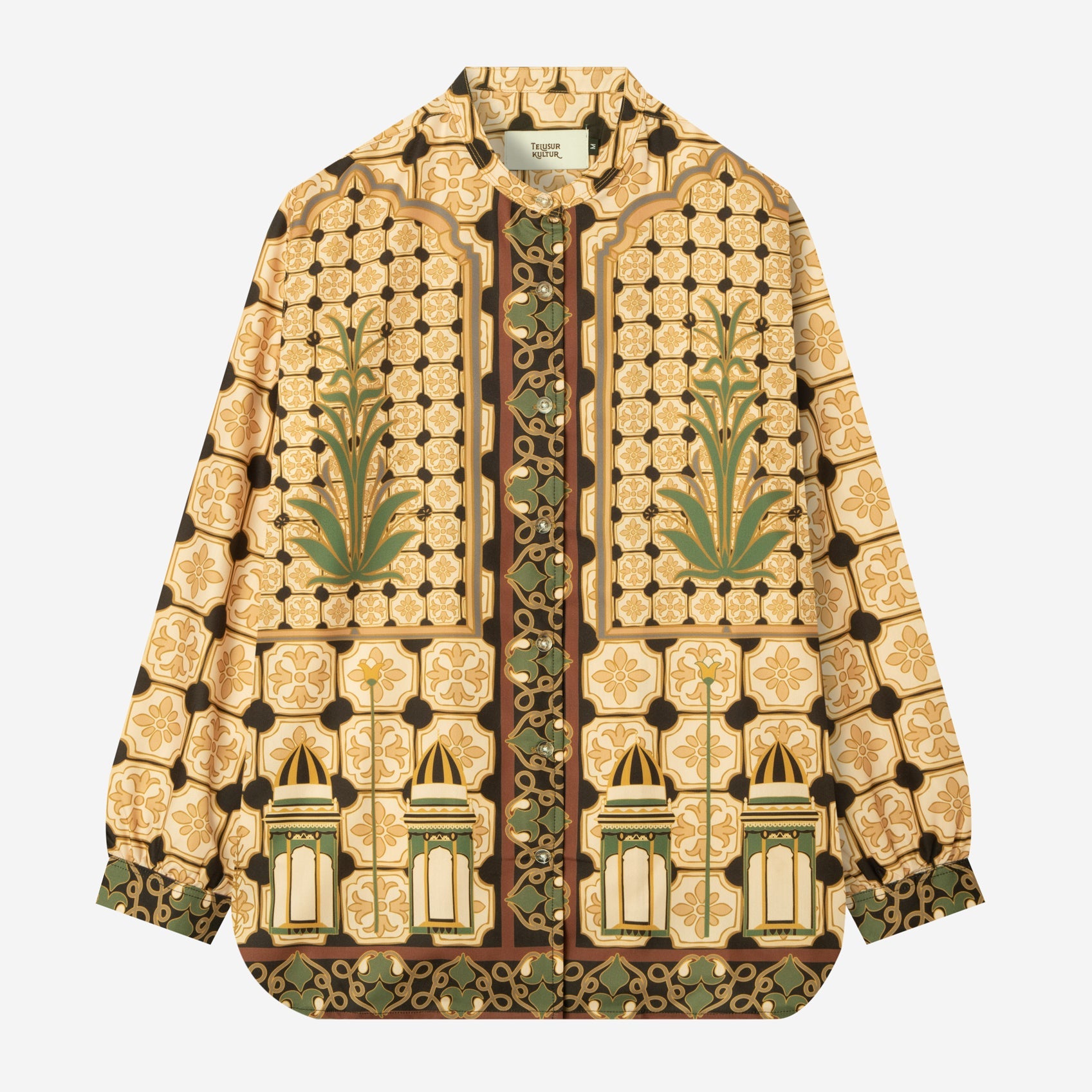 Corak Nusantara Kemeja Wanita Lengan Panjang - Masjid Coklat Hijau