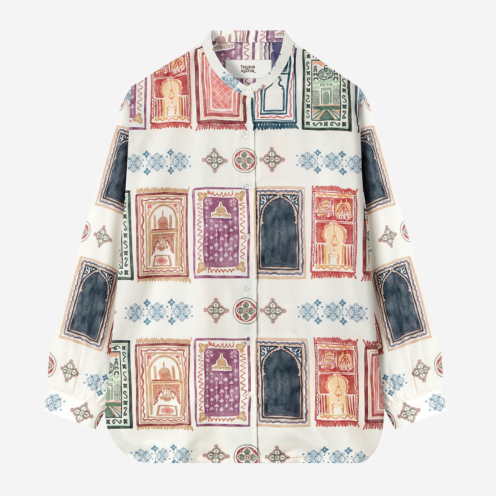 Corak Nusantara Kemeja Wanita Lengan Panjang - Sajadah Putih