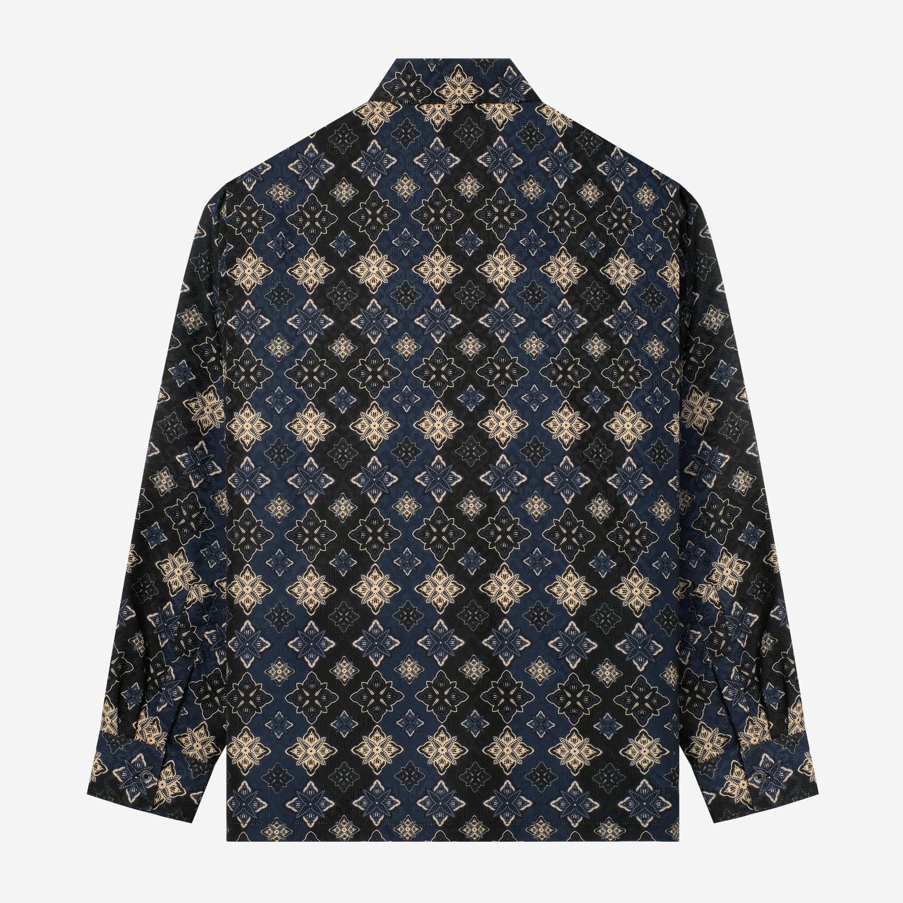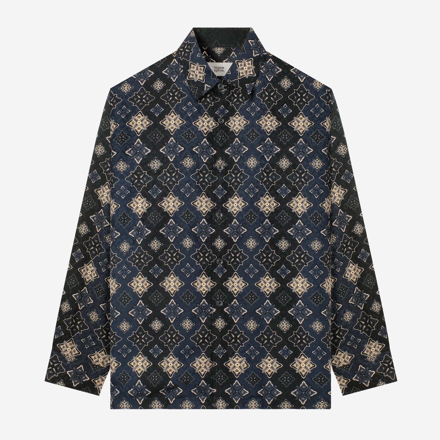 Corak Nusantara Perintis Lengan Panjang - Ketupat Biru Tua