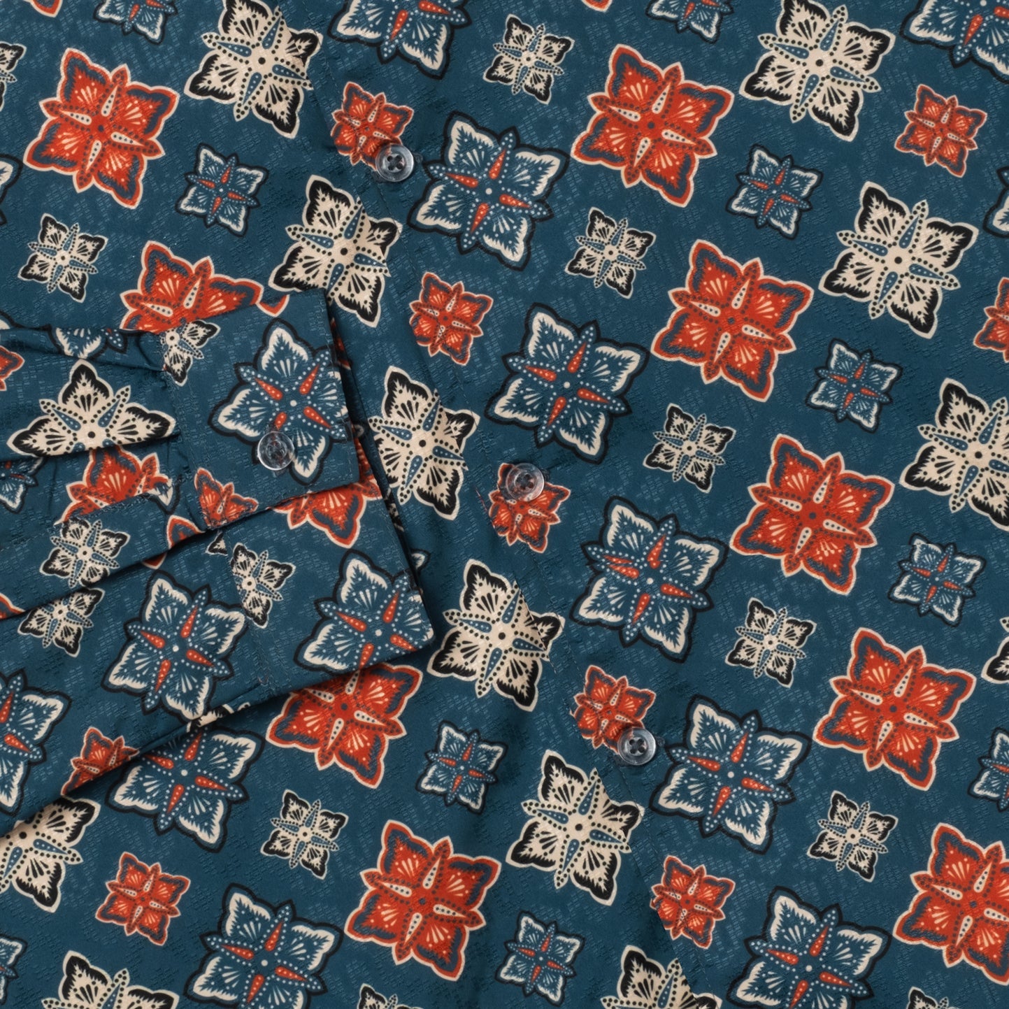 Kemeja ini dibuat menggunakan metode modern digital printing, yang memastikan setiap detail motif tercetak dengan presisi dan warna yang tahan lama. Penggunaan teknik ini memungkinkan kemeja untuk menghadirkan Corak Nusantara yang otentik dalam balutan busana yang praktis dan modern. Koleksi ini cocok bagi kamu yang ingin tampil elegan dan berbudaya, serta menghargai keindahan warisan seni tradisional Indonesia.